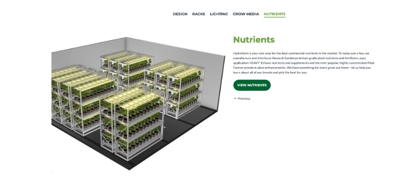 Hydrofarm Commercial Solutions is a leading supplier of greenhouse equipment for the commercial cannabis growing industry. With a wide range of industrial products—including racks, benches, LED lighting, climate control systems, nutrients, and water management solutions—their website needed to clearly communicate both scale and expertise. Hydrofarm Commercial Solutions partnered with Green Closet Creative for commercial website design that would showcase their product offerings, support large-scale growers, and help customers maximize space and yield.